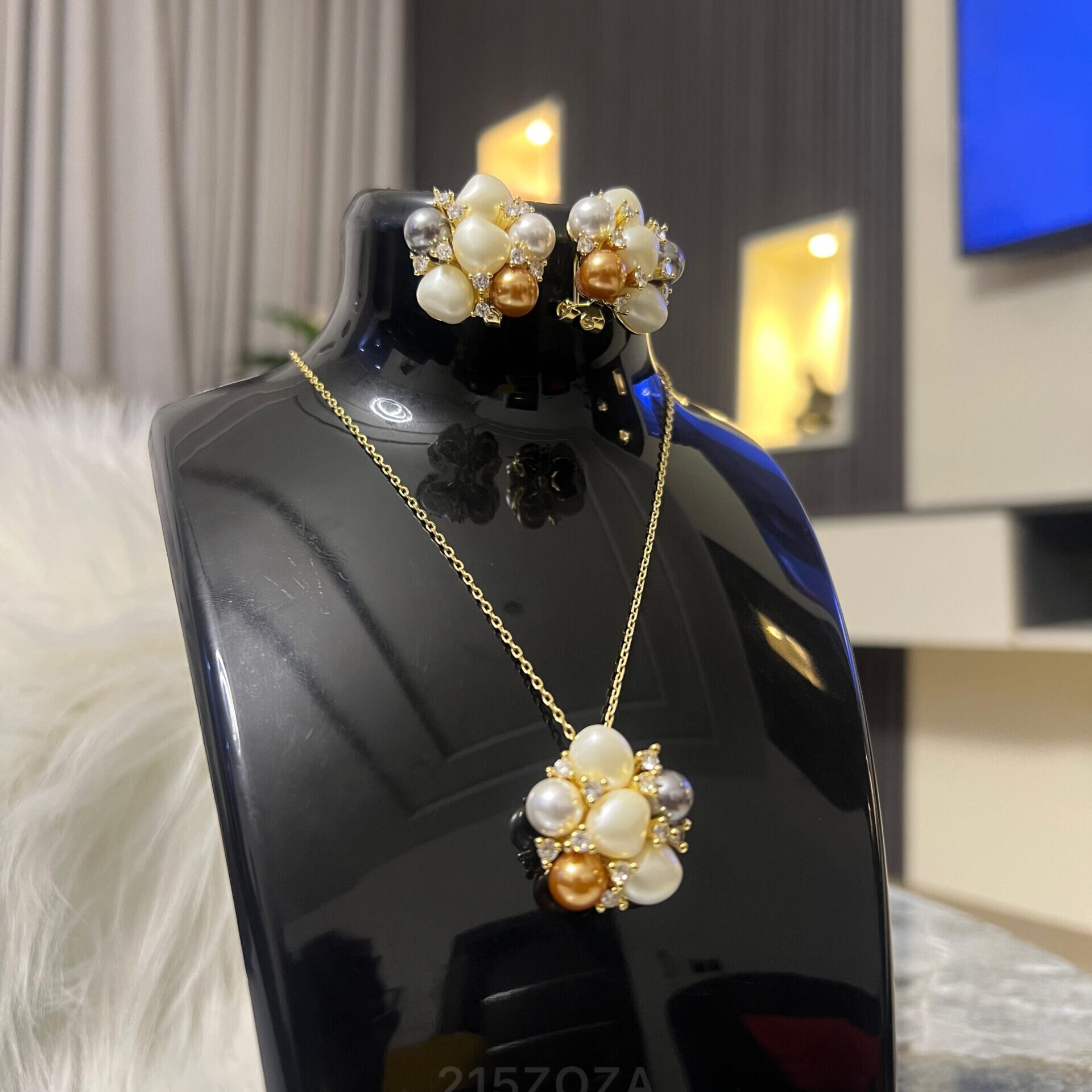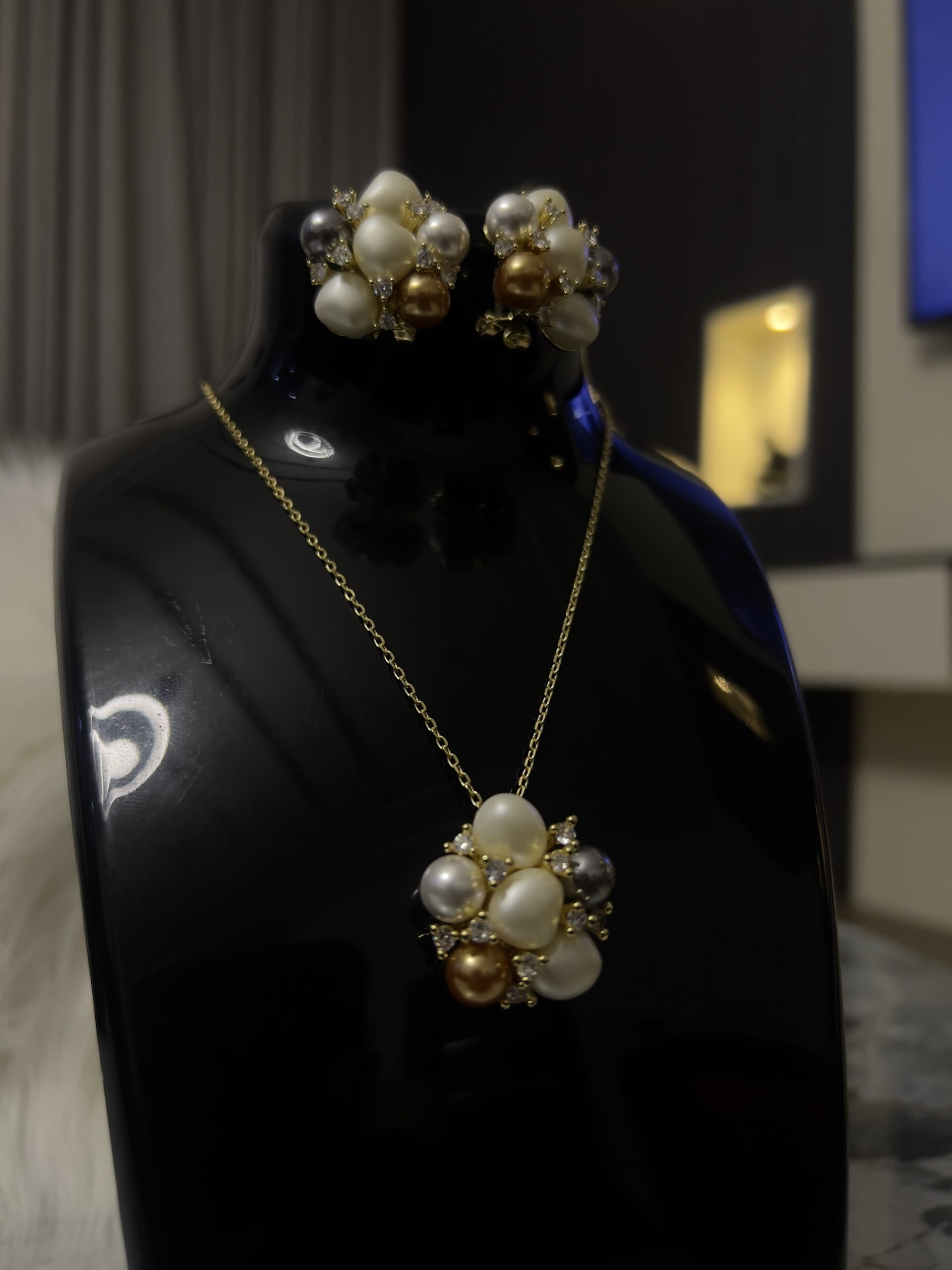 Clustered Pearl with gold accents. Classic wealth energy. Statement pearl.